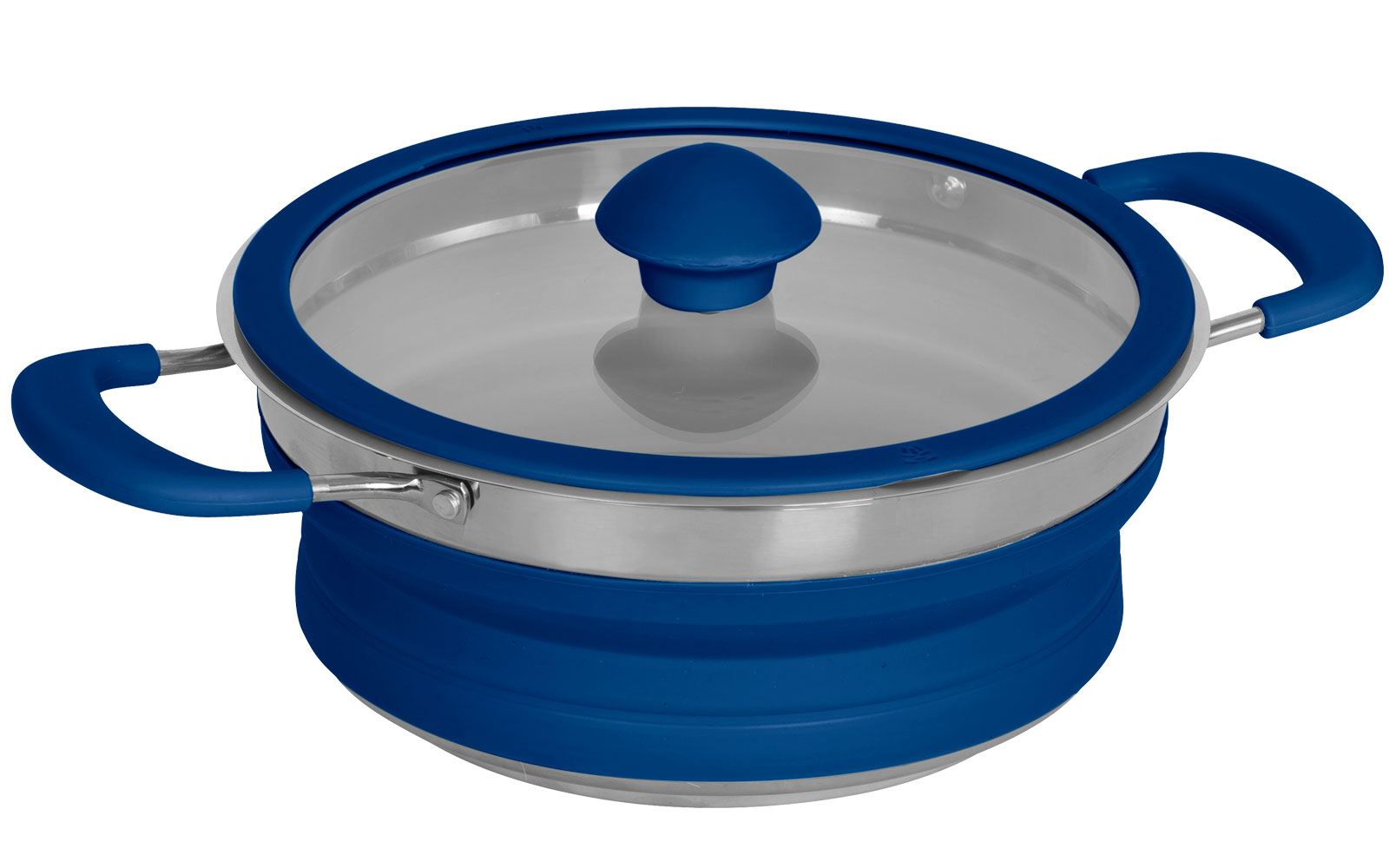 Velice praktický skládací hrnec, vyrobený z nerezové oceli a silikonu. Při složení je výška pouhých 6 cm, díky tomu je ideální do karavanu. Průměr 20 cm, výška 9 cm, objem 1,7 litru. Použitelný pro všechny typy ohřevu, včetně indukce.