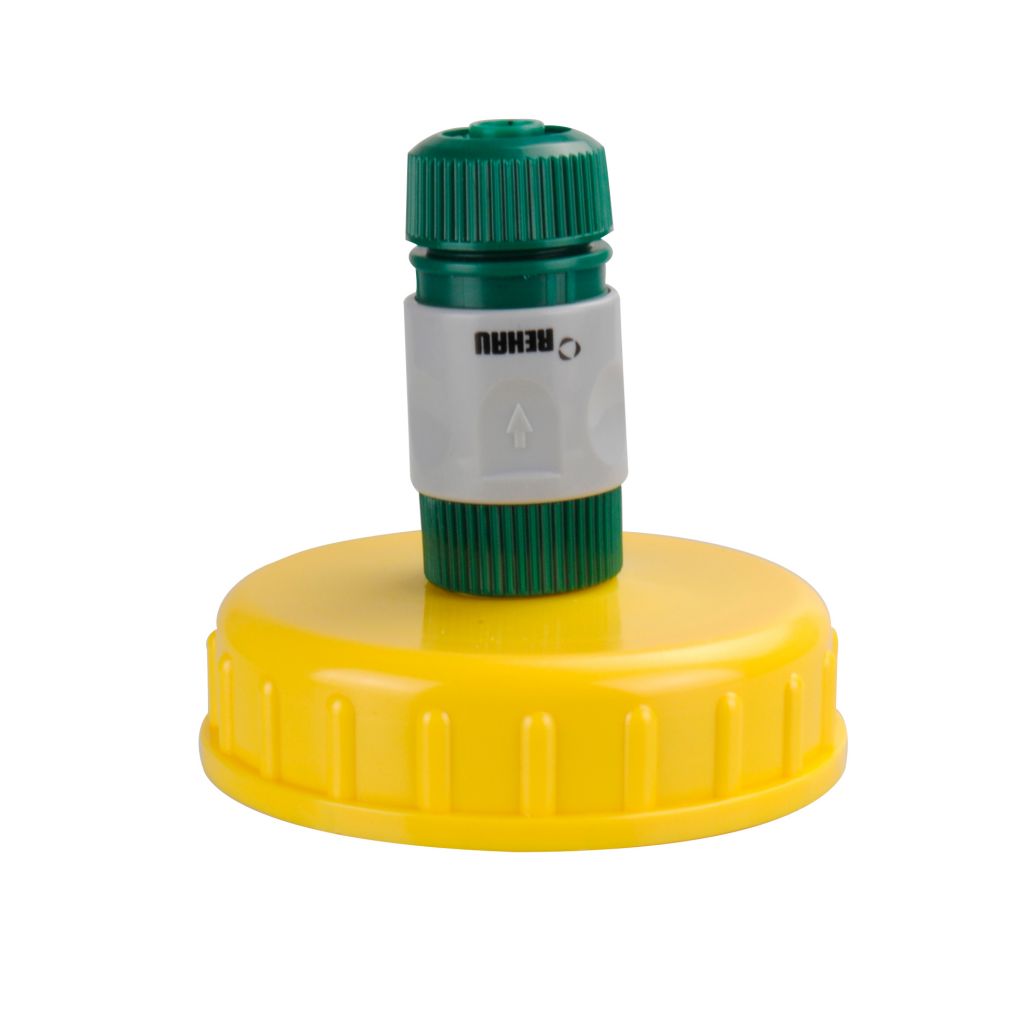 Uzávěr DIN 96 s rychlospojkou na hadici, pro snadné plnění kanystrů na pitnou vodu.