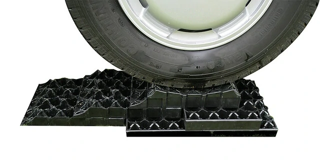 Sada 6 nájezdových vyrovnávacích desek pro nivelaci karavanu. Vyrobeno z polyetylenu odolného vůči UV záření, včetně úložné tašky. Hmotnost 6,8 kg, rozměry: délka 35 x šířka 23,5 x výška 5 cm. Max. zatížení 1,5 t.