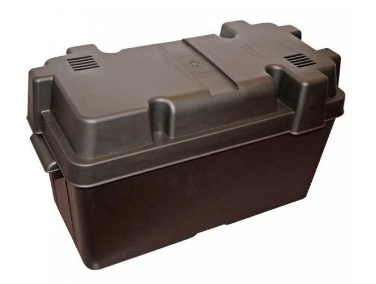 Robustní plastová schránka na bezpečné uložení baterie, pevný materiál odolný kyselině i benzínu. Variabilní díky nastavitelné vnitřní přepážce, upevnění baterie pomocí kurty. Vnitřní rozměry D 39,5 x Š 17 x V 23 cm.